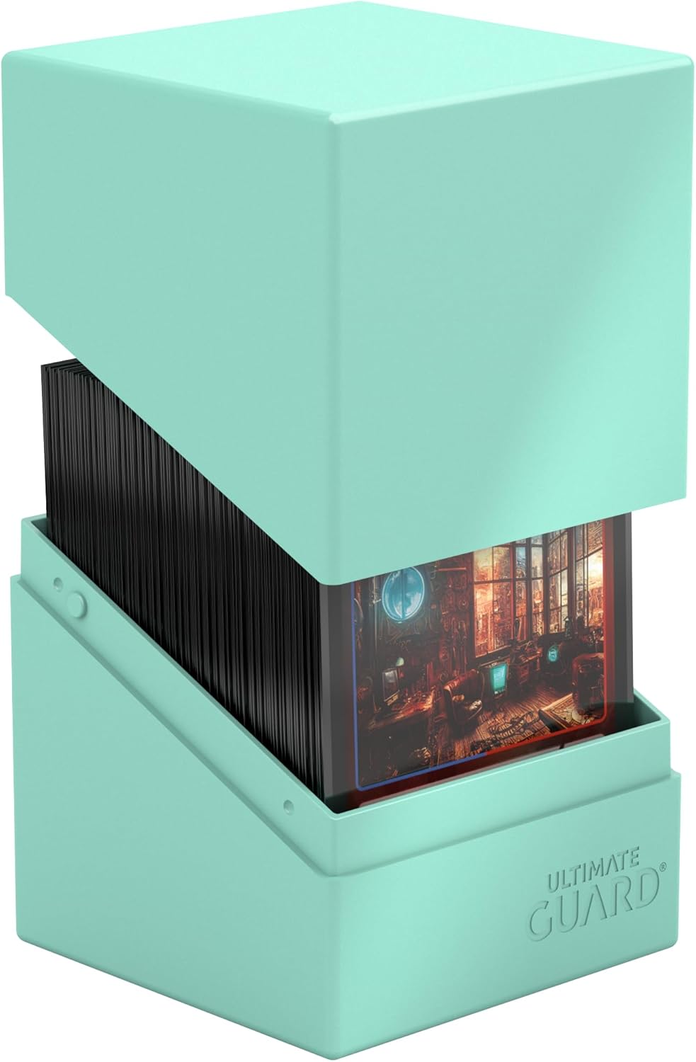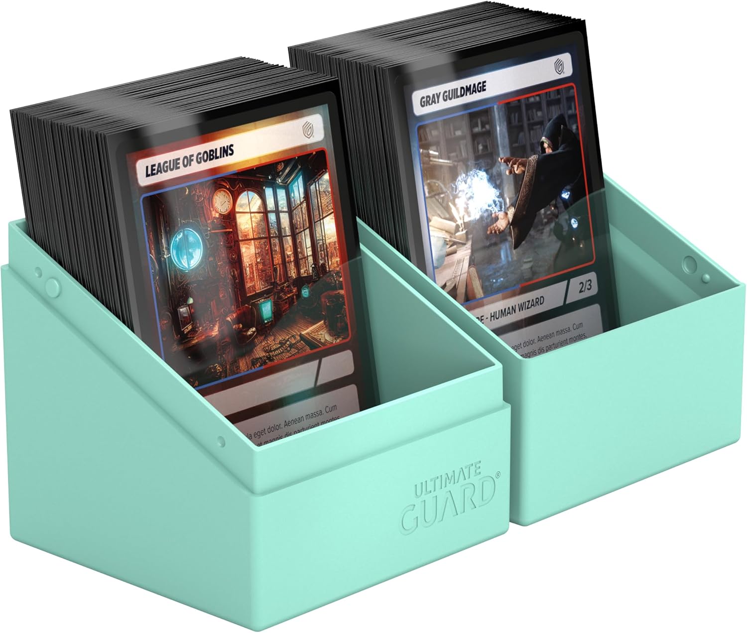Diseñada para 100 cartas con funda doble o 120 cartas con funda simple de tamaño estándar en fundas Ultimate Guard*.